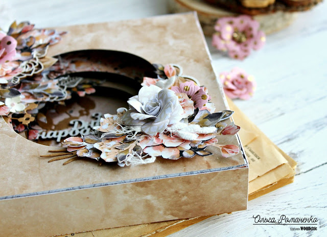 В слоях вырезалок и кружева разместила ботанических чипборд и завитки